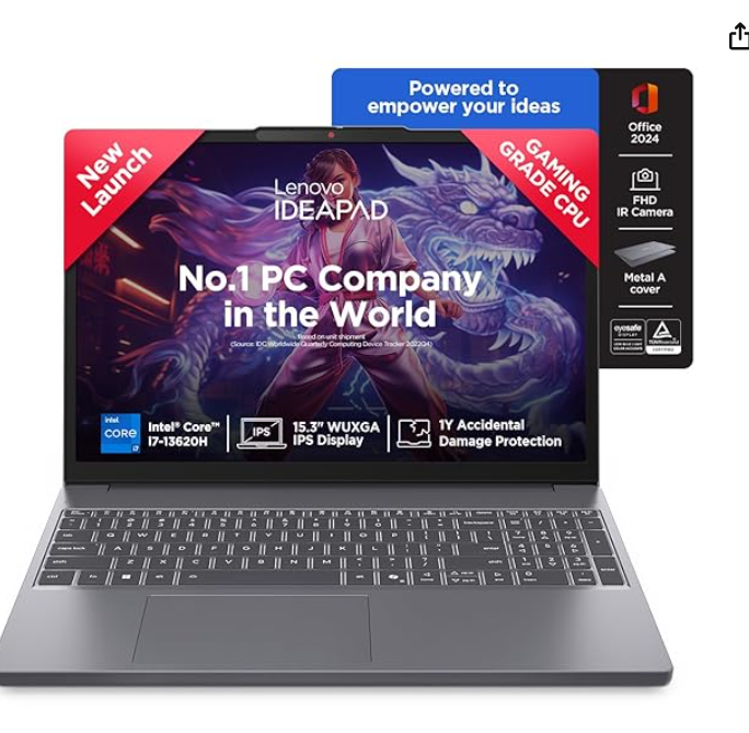 Lenovo Smartchoice Ideapad Slim 3 13Th Gen Intel Core I7-13620H 15.3 Inch(38.8Cm) WUXGA IPS Laptop(16GB RAM/512GB SSD/Windows 11/Office Home 2024/Backlit Keyboard/1Yr ADP Free/Grey/1.6Kg),83K100CJIN